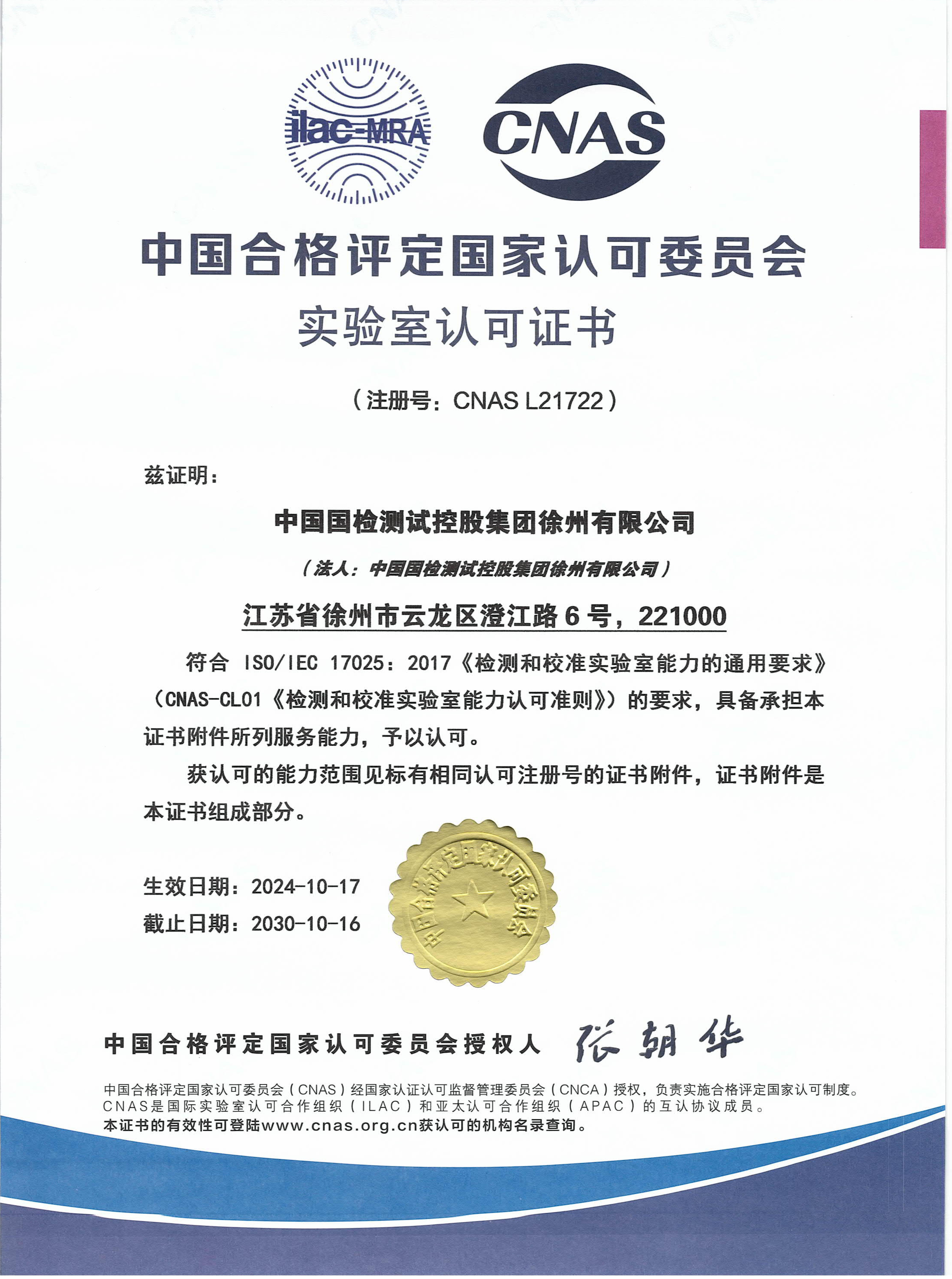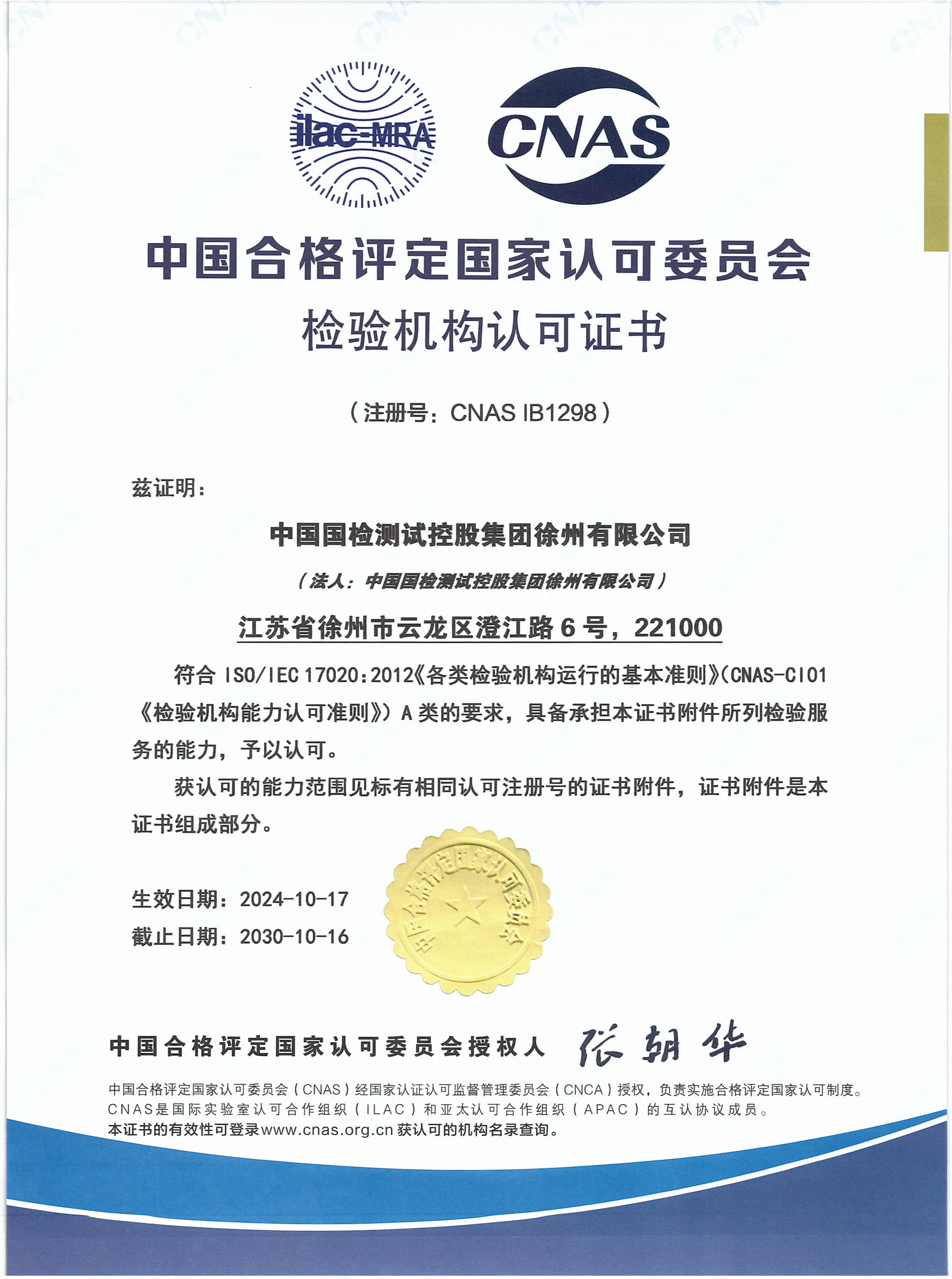 CNAS认可证书-检验机构...