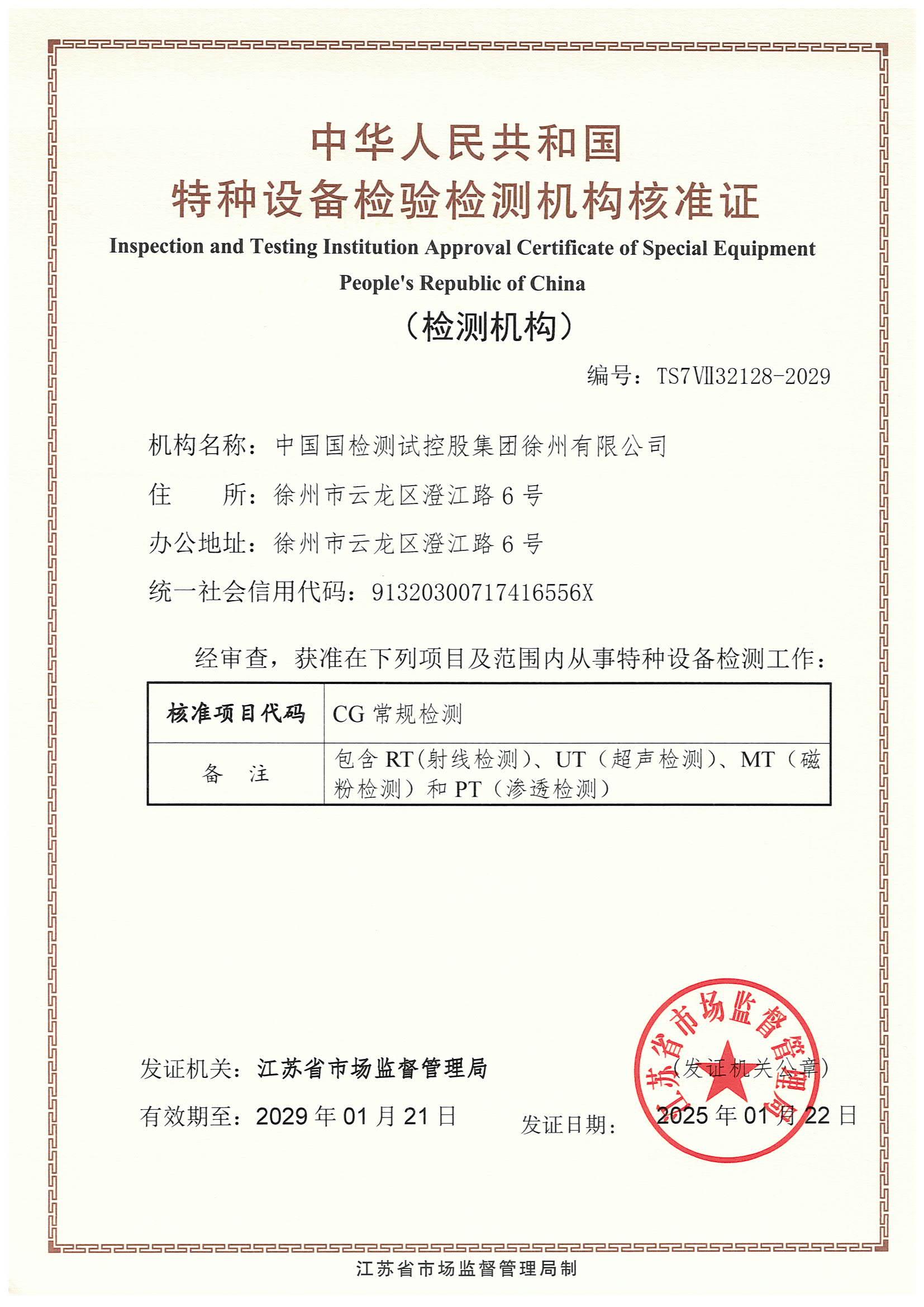 特种设备检验检测机构核准证书...