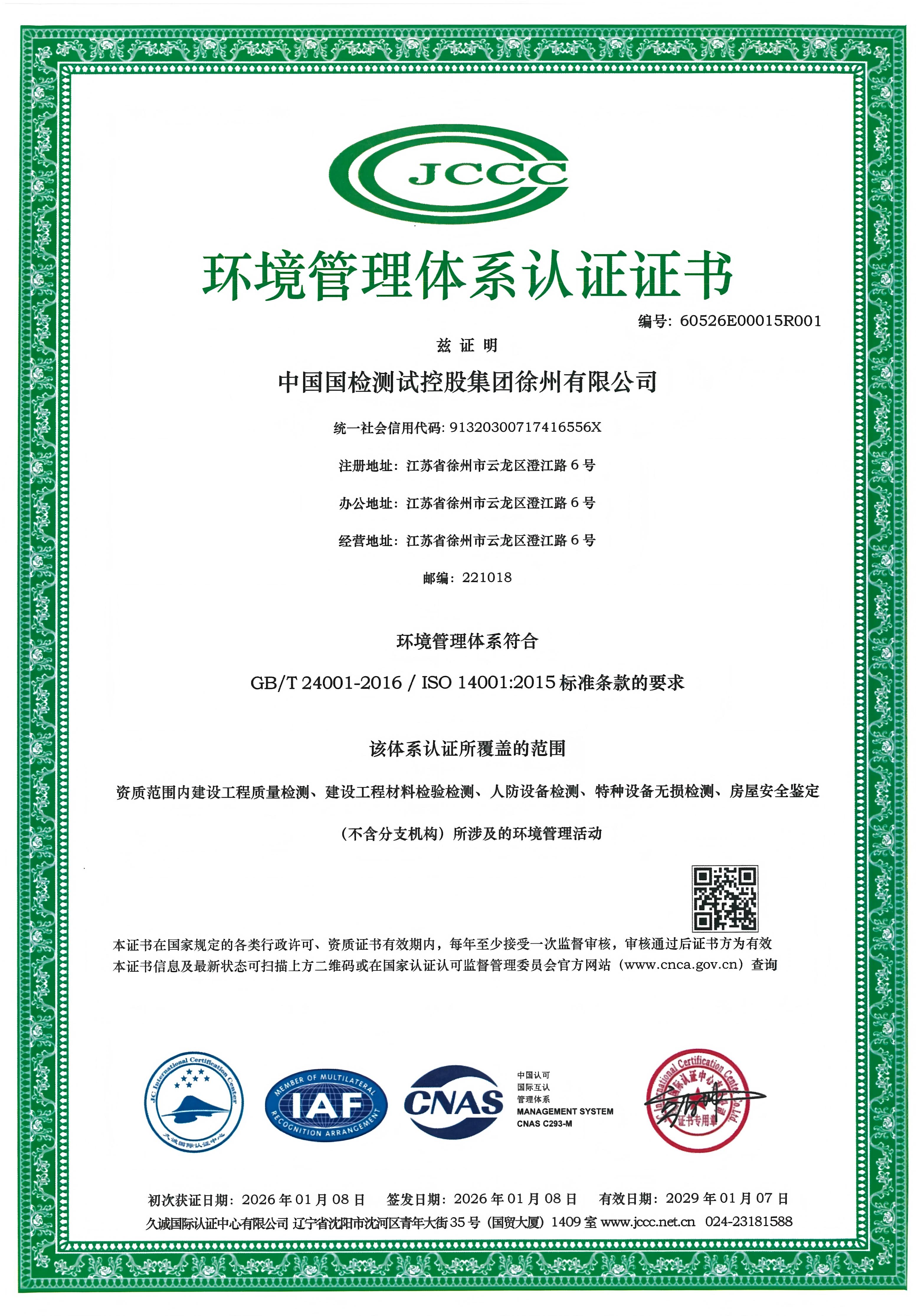 ISO14001环境管理体系认证证书...