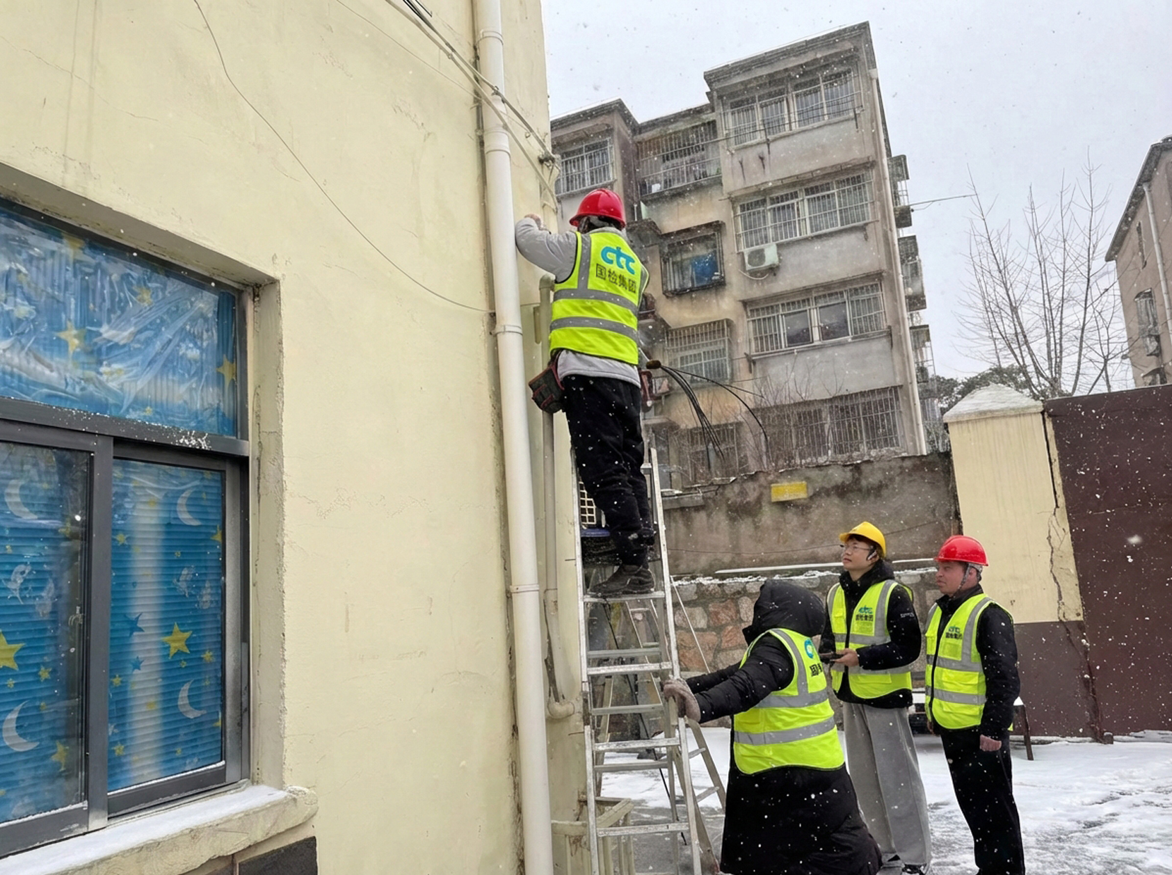 自2026年1月4日起,徐州公司迅速组建由60余名专业人员构成的技术团队,严格按照技术规范要求,克服大雪极寒、交通不畅及繁重核电检测任务等多重困难,历时37天圆满完成两区目标房屋的全面排查任务,建立起覆盖近5000栋房屋的“健康档案”基准数据库,为后续动态监测工作提供了坚实的数据支撑。期间,针对排查发现的110余栋C级危房,及时完成动态监测设备安装,实现了对重点房屋安全状态的实时监测。
